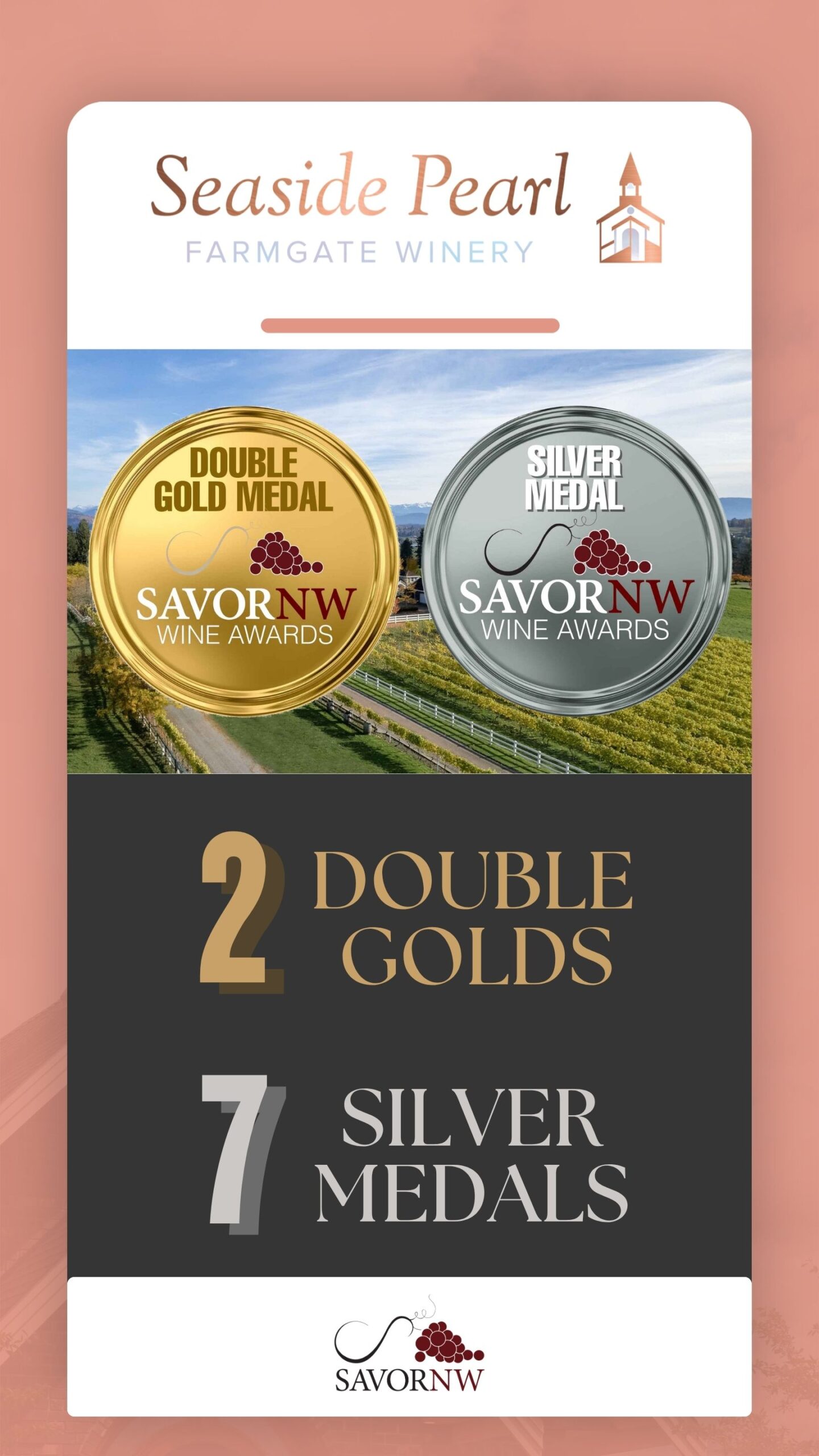 Seaside Pearl captures two Double Gold Medals in Savor North West Wine Awards!