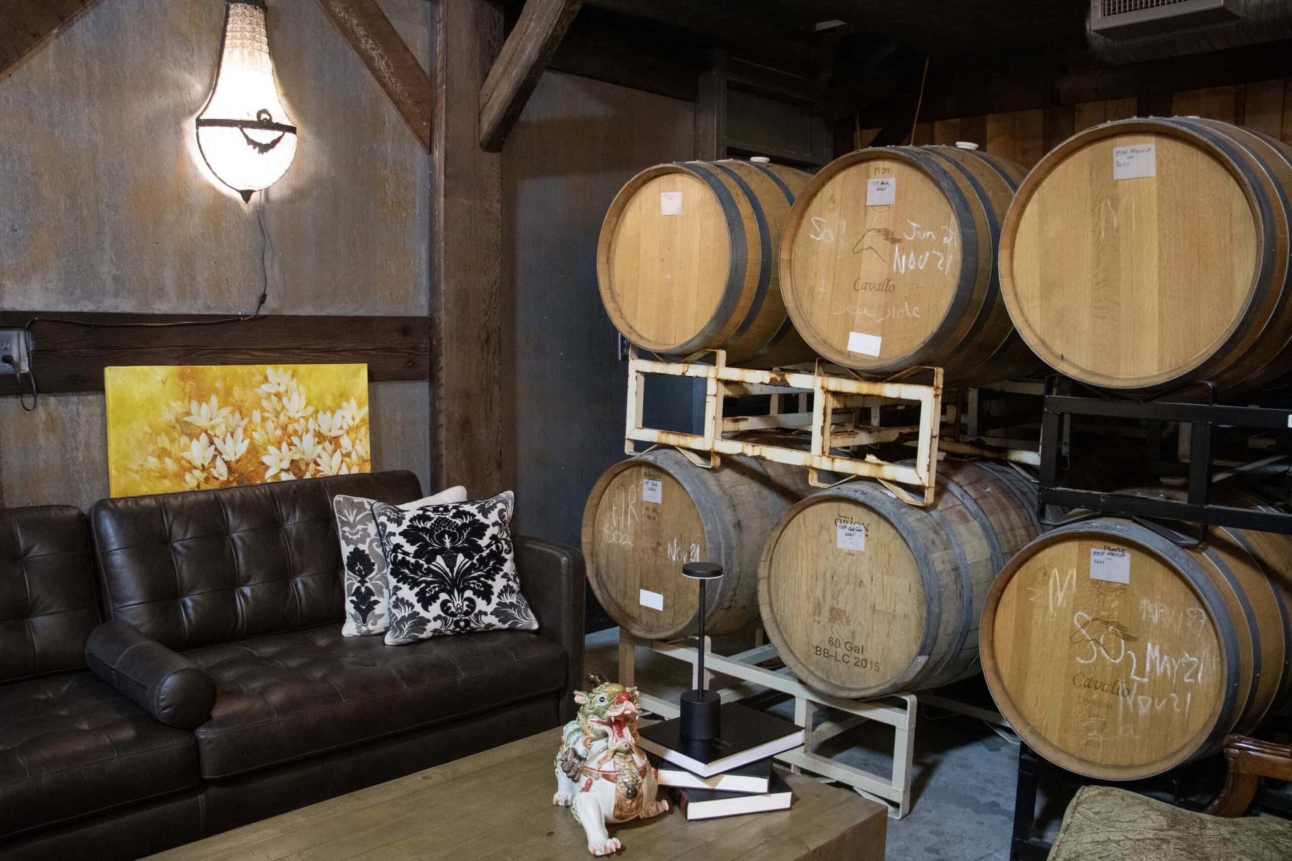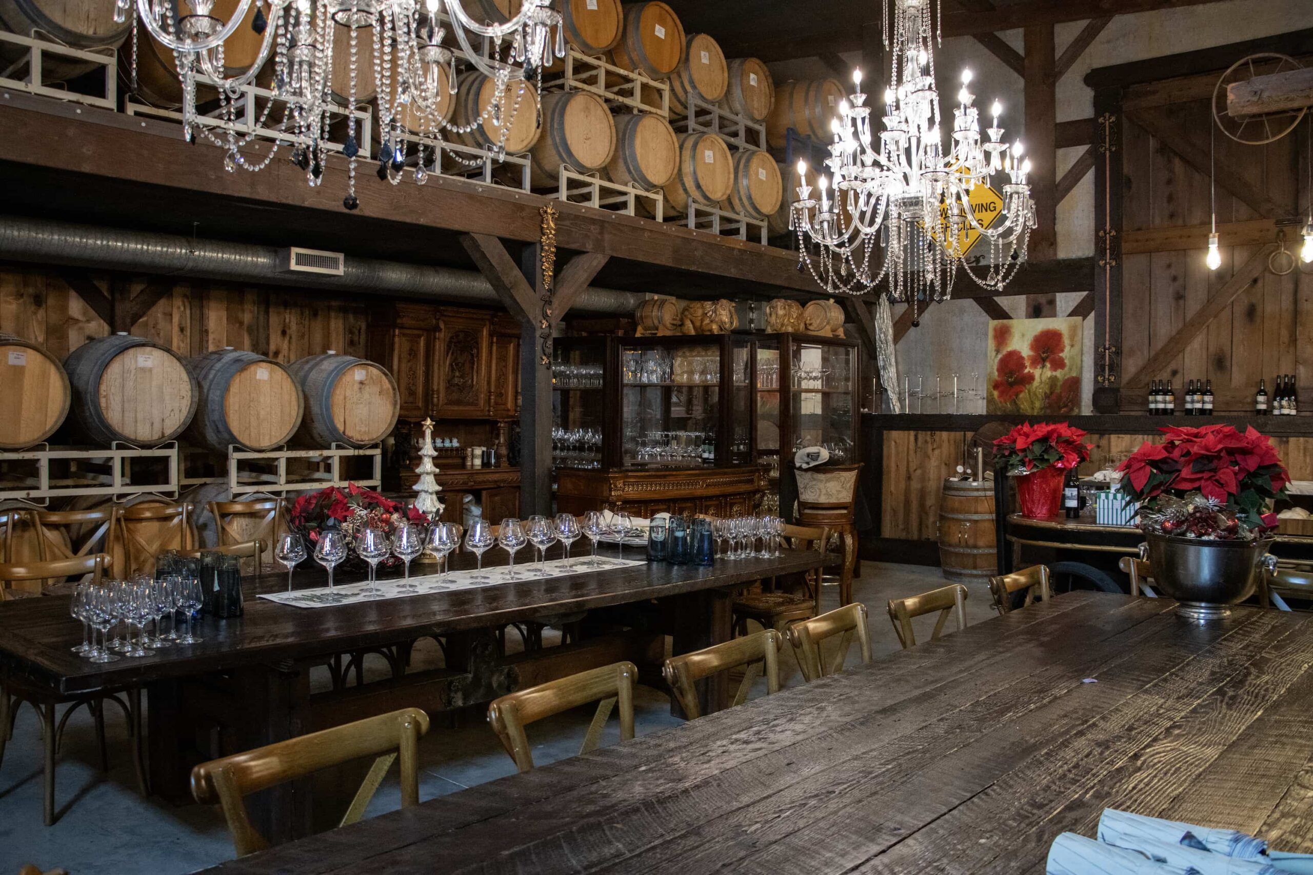 Because our cozy Chapel Tasting Room is small, groups of 10 or more are hosted in our beautiful Barrel Room.